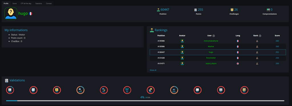 Jais choisi la certification root me, car elle me permet de travailler sur le domaine du hacking avec un système de challenge.